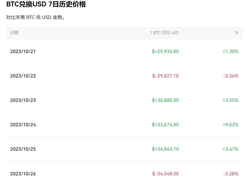 以上全部内容就是对1BTC等于多少USDT这一问题的解答,BTC和USDT的汇率也是不断变化的,它们的价格取决于市场供求和其他因素。通常情况下,USDT是稳定的,每个USDT等于1美元,但BTC的价格会波动较大。所以通常情况下1个BTC无法一直等于一定数量的USDT,具体的兑换率会随市场变化而变化,一般来说在30,000美元到40,000美元之间波动。后续若是想要知道准确的价格信息,可以在交易所页面进行查看实时信息。