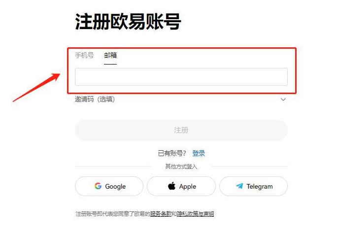 1、打开欧易OKX交易所官网(点击注册),选择手机号注册,输入手机号即可领取盲盒(使用邮箱注册需要进行手机号验证,推荐使用手机号注册)