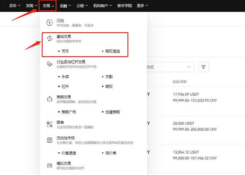7、点击首页的“交易”——“基础交易”进入交易页面
