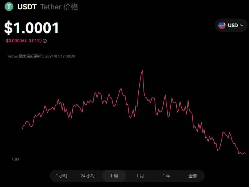 截止7月19日,USDT 是按市值计算的第三大加密货币,市值超过900 亿美元,每个代币价值为1.00 美元。这只意味着要克服波动性,而波动性一直是加密货币交易和投资的主要缺点。其击败波动系统的设计使其成为一项不错的投资。