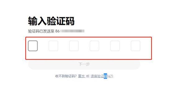 3、填入手机验证码