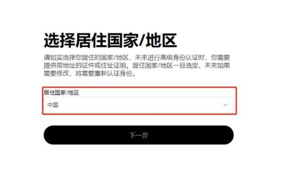 4、选择居住国家/地区,点击【下一步】