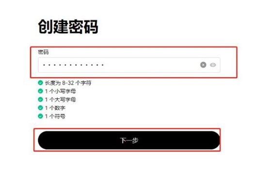 5、设置符合要求的密码,点击【下一步】,即可完成账户创建