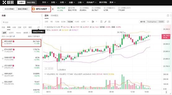 7、选择【BTC/USDT】交易对